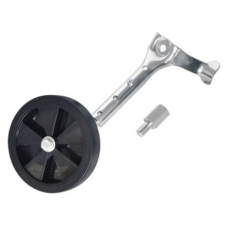 Estabilizadores de bicicleta infantil. V BIKESujeción premium con orejeta de refuerzo.Regulable universal de:14-16-18-20 (350-500mm)Para bicicletas con cambio.Rueda Ø120mm Color negro.